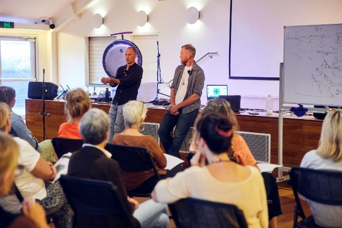 Rather than accumulating ideas, the day is designed to create direct experience. Insight moves out of the mind and into the body, where it can reorganise how you feel, respond, and relate.